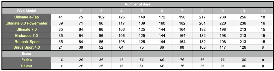 We also stock pedals and helmets if you prefer not to bring your own for just a Euro/day.